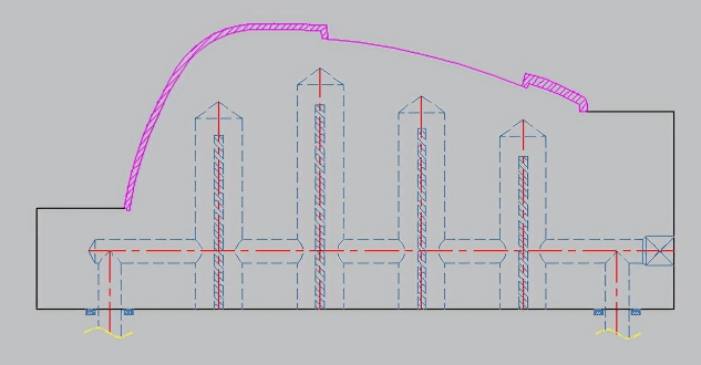 2、對(duì)于高低落差小,但是長度方向較長的產(chǎn)品,采用回字形水路中間加水井冷卻的方式,如下圖所示: