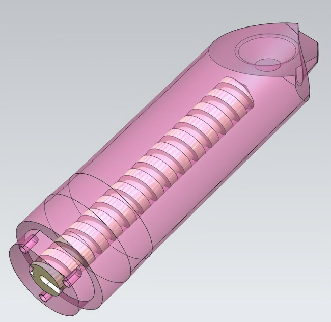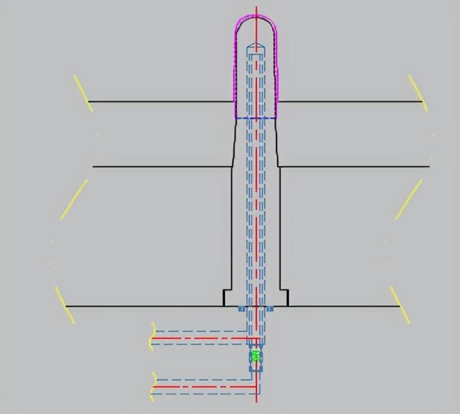 5、對(duì)于一些較長的型芯,為了保證冷卻效果,除了采用水井冷卻以外,還可以采用螺旋運(yùn)水冷卻,如下圖所示: