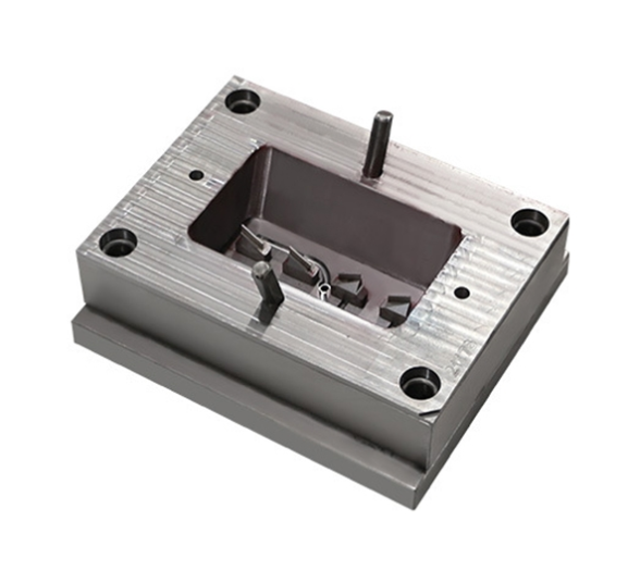 示例A:手持設備中框,約270×180×25 mm,單腔,冷流道,局部兩處側抽,壽命30萬模,外觀噴涂級